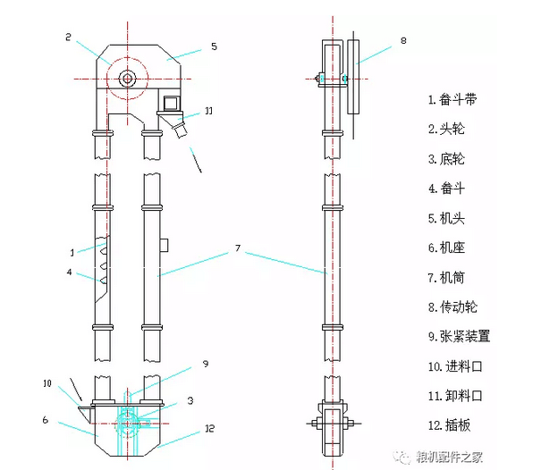 畚斗帶:斗提機頭,尾輪之間的牽引件。